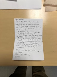 “Dear Stephen, From my first day (from the beginning of the interview process really), I’ve been impressed with your balance of authority and tact. Thank you for...